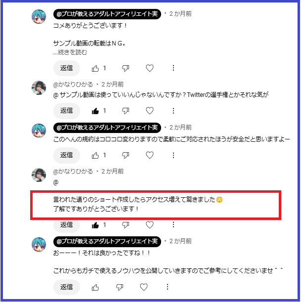 私は2014年からアダルト、恋愛、漫画ジャンルで1500名以上の初心者ユーチューバーへノウハウを提供し多くの成功者を輩出してきた実績があります。