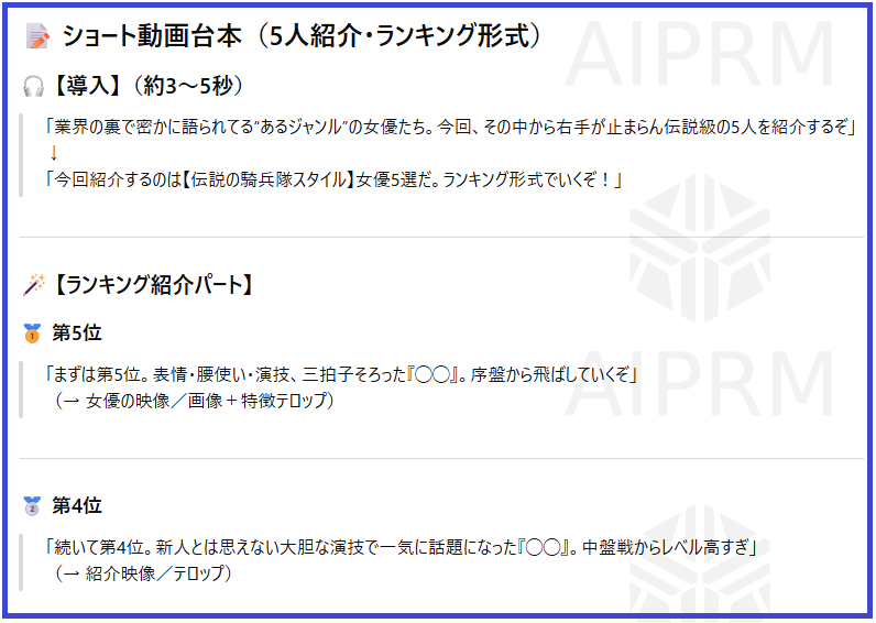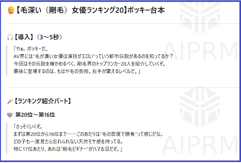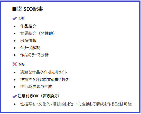 だから、「女優の魅力を深掘りした記事」「ユーザーが刺さる紹介文」をAIに丸投げすると必ず外れます。