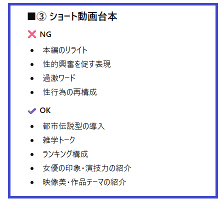 私は毎回こう聞きます:「この文章の中でBAN対象の表現ある?」「安全ラインにリライトして」